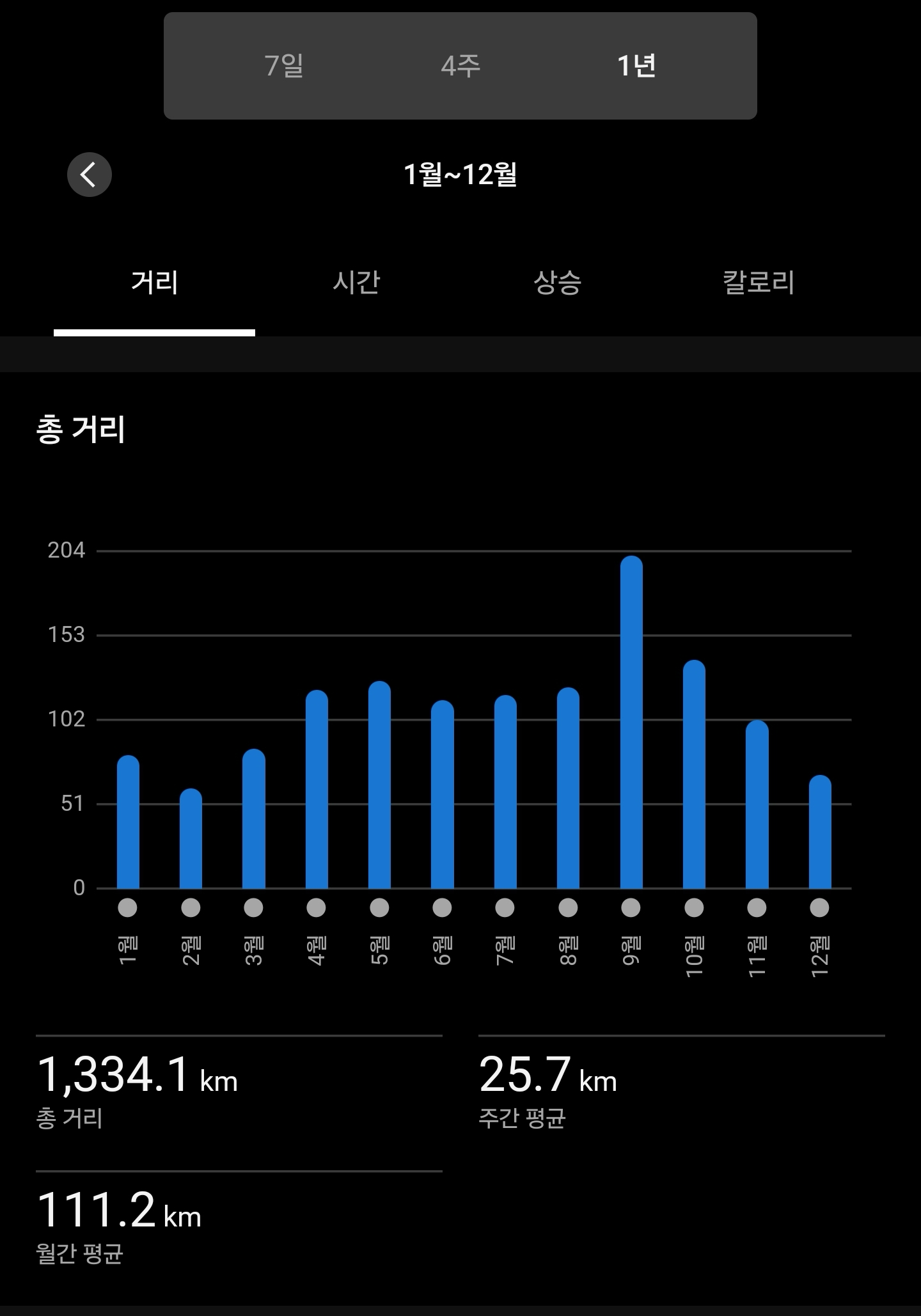 달리기를 시작한지 약 7년이 되었는데, 처음으로 연간 마일리지 1,000km를 넘겨봤다.