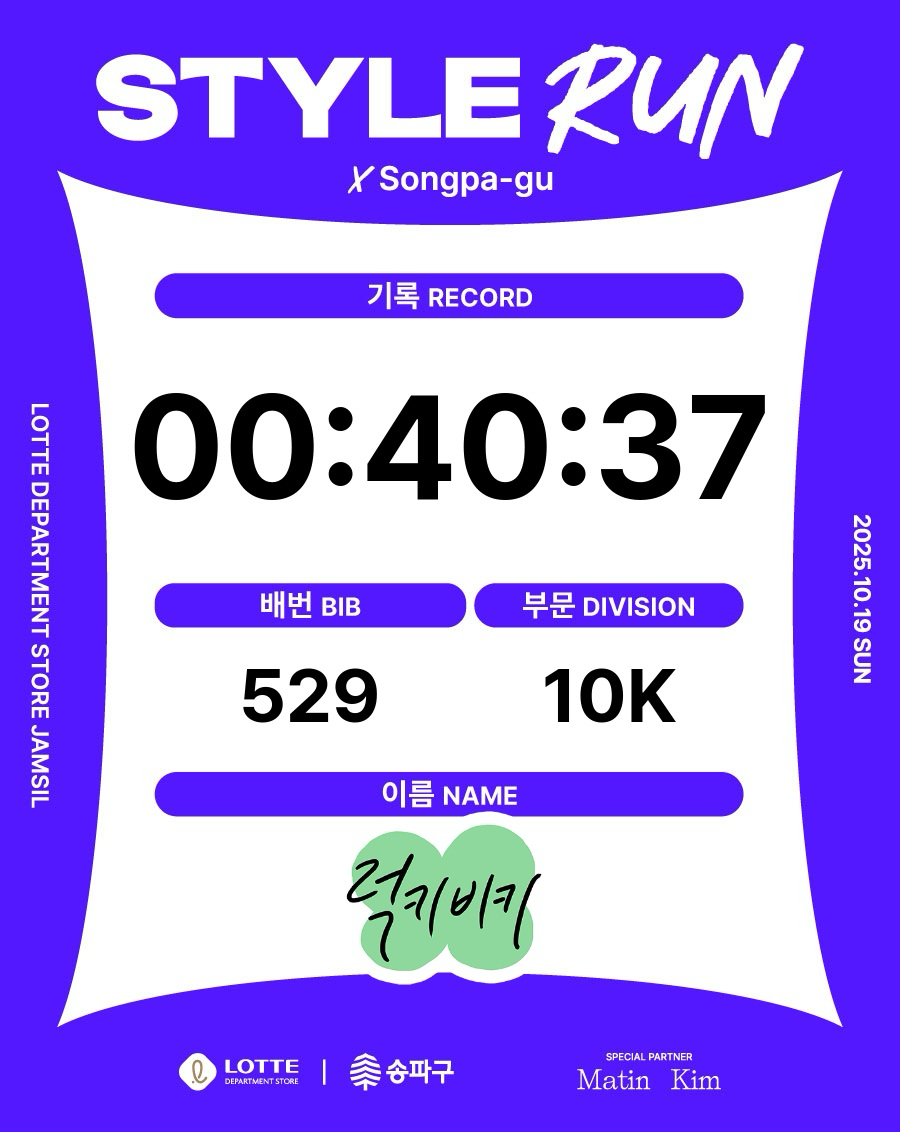 스타일런에서 10k 40분 37초로 40분 초반대 기록에 성공했으며, 풀코스 3시간 29분 36초로 3시간 30분 언더에 성공했다.