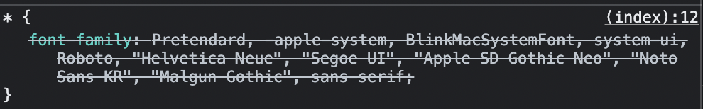 (리액트 문제일 지는 좀 더 확인해야 하지만..) 적용이 됐음에도 위처럼 취소선이 그어지며 적용안된 것 처럼 보여진다.