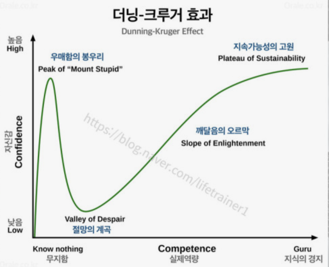흔히 말하는 더닝-크루거 효과의 우매함의 봉우리를 찍었으며, 나는 오히려 일찍 알아차리게 되어서 다행이었다고 생각한다.